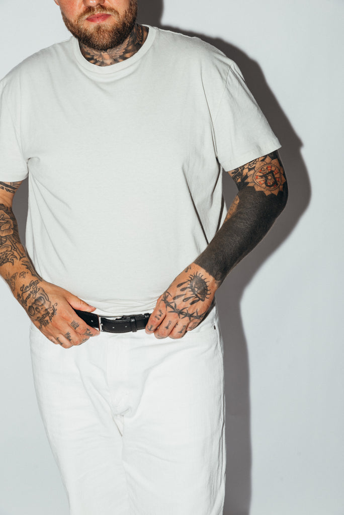 Gemaakt van een redelijk zwaar geslubd katoenen single-jersey, voelt dit shirt rijk en karaktervol aan. De kleur ‘Verwassen Grijs’ – een subtiel spel tussen heel lichtgrijs en een vleugje blauw – geeft het T-shirt een verfijnde, gedragen uitstraling die moeiteloos combineert met elke garderobe.